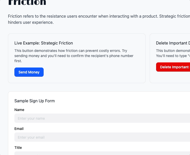Adding intentional friction in the right moments reduces mistakes, increases safety, and gives users time to think before acting.