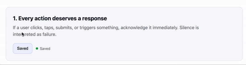 When indicators are clear, users stay in the flow. They feel confidence in the system. However, when they’re vague or missing, users assume the system is broken or that they fucked something up. In fact, many “performance problems” aren’t technical at all, they’re communicative (NOTE: This also happens to typically be the biggest challenge when dealing with people).