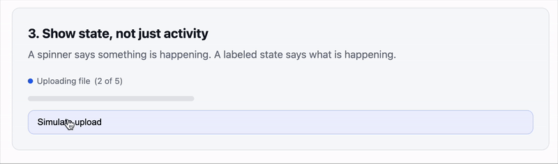 A fast system with poor indicators can feel broken. A slow system with good indicators can feel reliable.